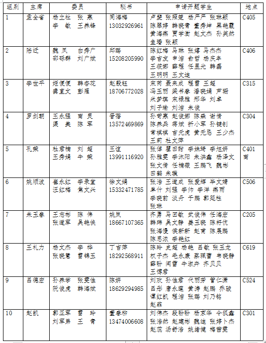 以上申请开题学生应在9月12日下午4:30点前,与本组答辩秘书联系沟通答辩公告发布等事宜。